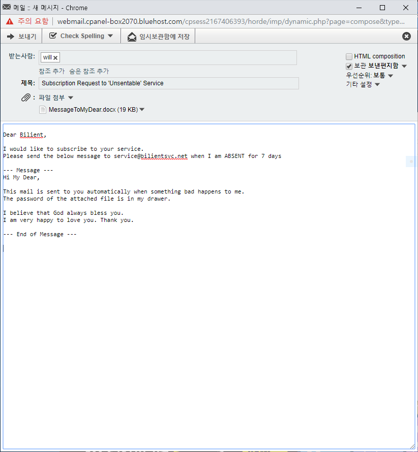 Please, send me a email to unsentableletter@bilientsvc.net like shown below.
